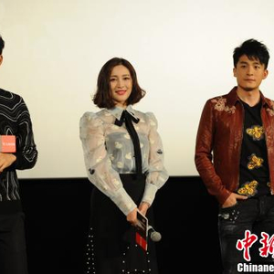 主演钟汉良、甘婷婷和孙艺洲亮相看片会现场。 徐银 摄