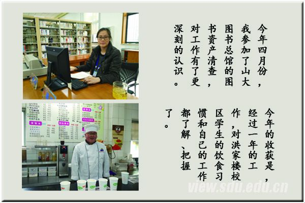 洪家楼校区图书馆管理人员郭萍、食堂工作人员刘波