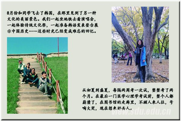 威海校区韩国学院2014级本科生宋敬君(左图中左三)、基础医学院2014级本科生付梦迪(右图)
