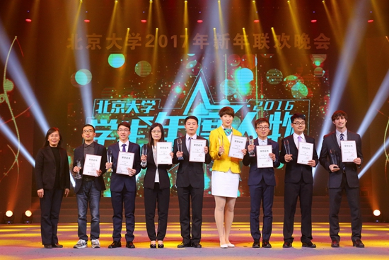 校领导合唱2016年北京大学学生年度人物颁奖仪式和北京大学2016年“网络新青年”颁奖仪式在晚会上进行,校党委副书记叶静漪和副校长高松分别为获奖学生和青年颁奖。