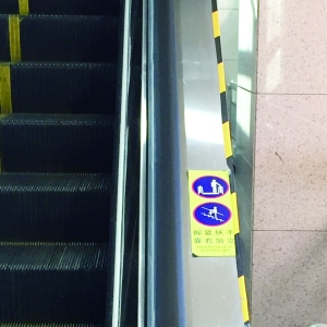 相比于地铁里的人流攒动,另一个扶梯的常用公共场所商场则是显得空旷了许多。北京晨报记者近日走访多家商场发现,商场的扶梯并没有分开左右两侧的黄线,张贴的乘梯注意中,也没有提示“右立左行”,只提示握好扶手。