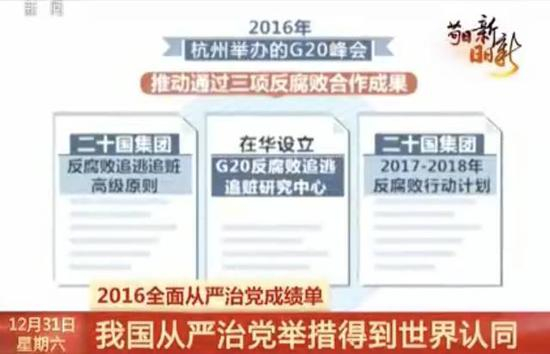 今年在杭州举办的G20峰会上,我国推动通过了《二十国集团反腐败追逃追赃高级原则》等三项反腐败合作成果,获得了所有成员的一致认同。