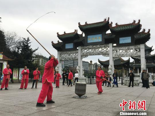 中新网贵阳1月6日电 题:贵阳市民甲秀楼打陀螺健身成风景