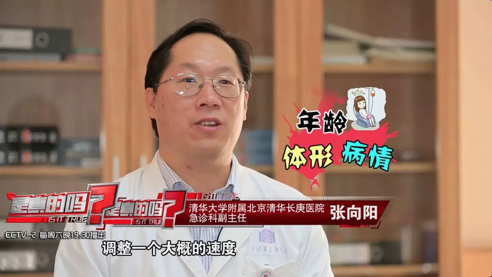 清华大学附属北京清华长庚医院急诊科副主任 张向阳:都是根据病人的具体情况,包括年龄、体形,还有具体的病情,调整一个大概的速度。一般可能是1分钟1到2毫升,20滴到40滴左右,但是要根据具体情况进行调节,所以每个人之间的输液速度可能会相差很大,尤其老年人比如说心功能不好的时候,把输液速度调的很快至少从这个入液量来讲可能对心脏的负荷会造成很大的负担,容易导致心衰,小孩也容易出现这种情况。