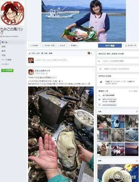 日本驻华大使馆在其官方微博表示,照片最先由日本宫城县南三陆町经营水产品销售公司的阿部民子女士于1月4日发在自己Facebook上,搭配的文字是“今天开始出货新鲜牡蛎啦!还有这么大个儿的哦Σ(゜Д゜)。海水温度降低后,牡蛎的肉变得更好、更美味~”。