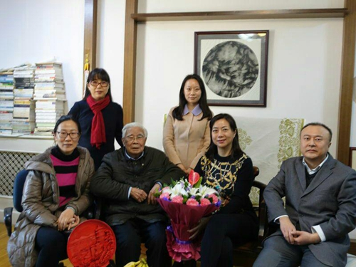 2017年1月10日下午,民盟北京大学委员会主委李玮,副主委宋春伟、李少华,以及民盟中央宣传部干部姜玲玲、李朝俊,一起来到哲学系教授、著名学者张世英先生家中拜望,为老先生带来民盟北京市委颁发的40年以上盟龄荣誉奖和纪念品,并送上民盟组织的亲切问候。