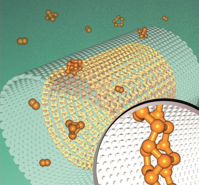 西安交通大学电气学院电力设备电气绝缘国家重点实验室新型储能与能量转换纳米材料研究中心利用碳纳米管特殊反应内腔,在碳纳米管内合成了一种全新了环状磷结构,该结构有P8与P2结构单元交替组成。该结构首次被合成并在实验上被观察到。相关成果以“Assembly of Ring-Shaped Phosphorus within Carbon Nanotube Nanoreactors”为题发表在化学领域权威期刊Angewandte Chemie International Edition上(影响因子11.709)。该工作由电力设备电气绝缘国家重点实验室新型储能与能量转换纳米材料研究中心牛春明千人团队张锦英研究小组和电信学院贾春林教授以及密歇根州立大学David Tománek教授合作完成。