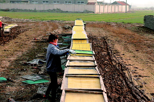 压好的黄香需要放在透气网板上晾晒三天。又到忙年时,胶东半岛的母亲河——大沽河畔的谈家庄村也到了一年当中最忙碌的季节。从清末开始,这个大约400户的小村庄制香的手艺已经传承了四代人。虽经过历史变迁、时代变换,制香工艺不断进步,谈家庄的黄香却一直是胶东半岛地区老百姓公认的“头牌”。