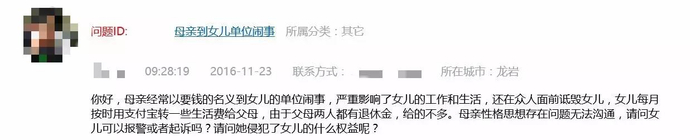 你好,母亲经常以要钱的名义到女儿的单位闹事,严重影响了女儿的工作和生活,还在众人面前诋毁女儿。女儿每月按时用支付宝转一些生活费给父母,由于父母两人都有退休金,给的不多。母亲性格思想存在问题无法沟通,请问女儿可以报警或者起诉吗?请问她侵犯了女儿的什么权益呢?