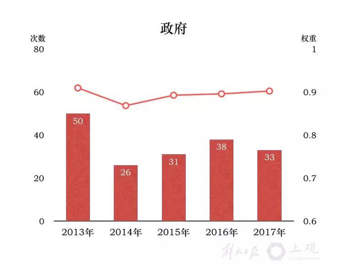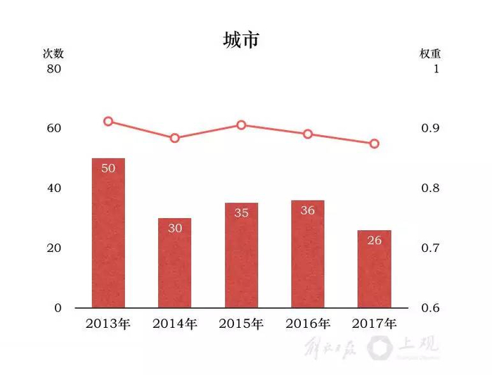 2017年《政府工作报告》火热出炉啦!它是由哪些热词构成的呢?解放日报·上观新闻“词解”2013~2017上海政府工作报告:464次提到“建设”,284次提到“改革”,283次提到“创新”,居十大高频词前三位。