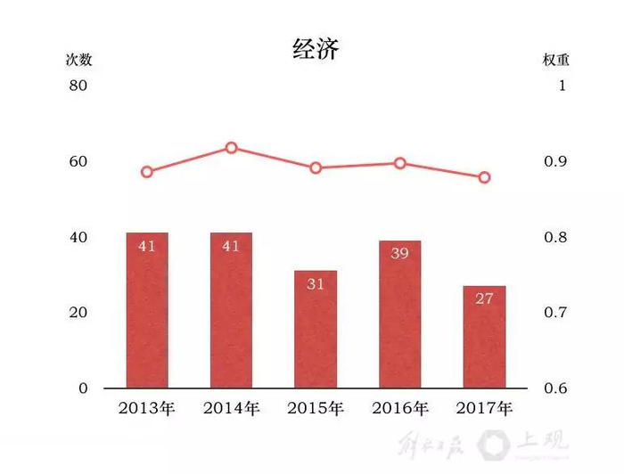 经济历来是政府工作报告中排名居前的热门词语。以经济建设为中心是党的基本路线,也是政府工作的重要内容。去年以来,在经济下行压力较大的情况下,上海通过深化以自贸试验区建设为重点的改革开放,着力构建法治化、国际化、便利化的营商环境;同时,着重加强供给侧结构性改革,全力推动“四个中心”建设、经济稳定增长和产业结构调整,不断扩大有效供给。全市经济社会发展总体平稳、稳中有进、好于预期。