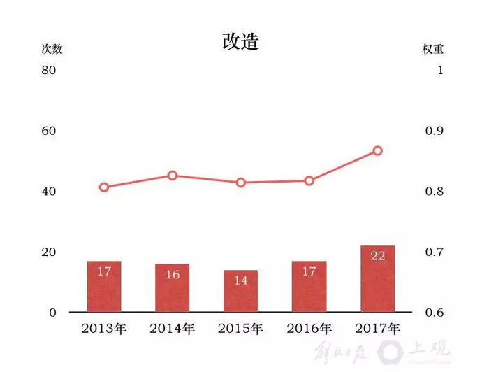 增加人民群众的获得感,是新一轮改革的鲜明导向,也要求政府工作必须更“实”。这一点,在政府工作报告的高频词中有不少体现。比如,“改造”一词连续三年攀升,今年达到22次,改造的范围包括二级旧里、旧住房、消防及供电设施等,还有农村村庄改造和农村生活污水处理设施改造等,都与千家万户密切相关。