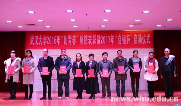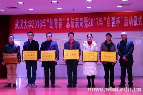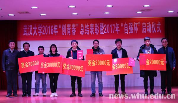 新闻网讯(通讯员张岱 记者陈丽霞)轻快悦动的舞蹈、酷炫智能的机器人、神秘大咖的远程祝福、声情并茂的诗朗诵……1月11日晚,学校召开总结表彰会,表彰在2016年“创青春”全国大学生创业大赛中获奖的先进集体和先进个人,同时,启动第十一届“自强杯”武汉大学课外学术科技作品竞赛活动。