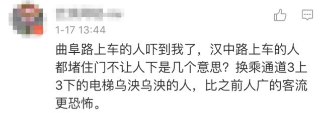 有网友表示,在曲阜路站台,挤上地铁成了门“技术活”。还有的网友直接被吓哭……