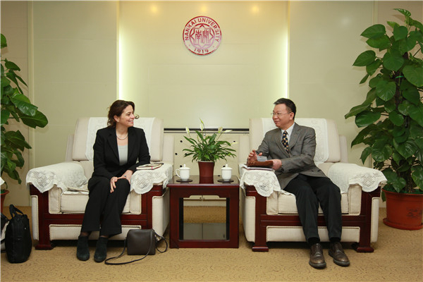南开新闻网讯(记者 马超 摄影 任永华)1月16日,德国雅各布大学校长卡特雅•温特访问我校,副校长严纯华在八里台校区服务楼会见了客人。