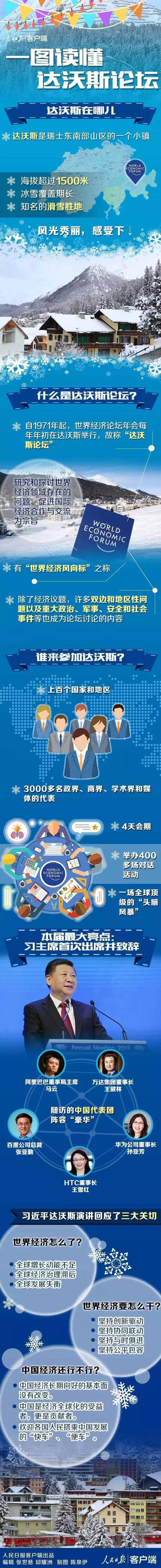 1月17日,习近平出席世界经济论坛2017年年会开幕式并发表主旨演讲。达沃斯世界经济论坛首次迎来中国国家元首。