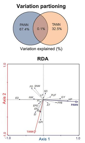 中国科学院地球环境研究所孢粉与热带气候变化研究团队李建勇、John Dodson、晏宏及其他合作者,根据孢粉数据和气候模型集成重建、模拟了中国北方季风区过去2200的降水、温度变化历史,并收集了17个定量的历史文献记录,利用统计方法分别定量评估了降水、温度变化对历史朝代兴衰更替的影响。重建结果显示,通过区域记录对比分析,基于孢粉定量集成重建的降水和温度序列,可以代表大范围的中国北方季风区过去2200年气候演化过程(图1)。统计分析结果表明,在定量探讨不同气候指标对北方历史时期社会变迁的作用方面,降水解释了67.4%的变化,而温度仅仅解释了32.5%的变化(图2)。由此可以推论,降水变化是影响中国北方大部分历史朝代兴衰更替的主导因素。