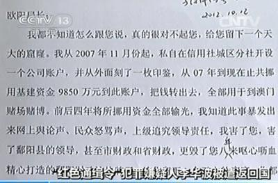 2011年2月10号晚,江西省鄱阳县财政局原党组副书记程四喜接到原鄱阳县财政局经建股股长李华波打来的电话。电话中,李华波不只告知单位领导自 己已经出了国,还声称他在当经建股股长的几年间,从鄱阳县财政局转走了巨额赃款。与此同时,和李华波一起转移赃款的两个同案犯也收到了李华波留给他们的 信。信上写到:“当你接到这封信的时候,所有的人都联系不到我了,我现在不上班了,出远门做生意。”第二天一早,程四喜就向当时的原县财政局局长欧阳长青 汇报了这个突发状况。