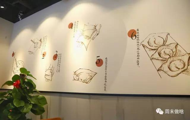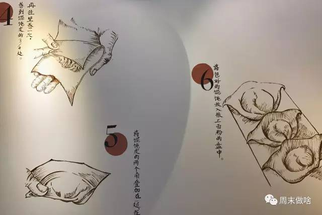 还有一片类似手绘风格的“包馄饨步骤”图