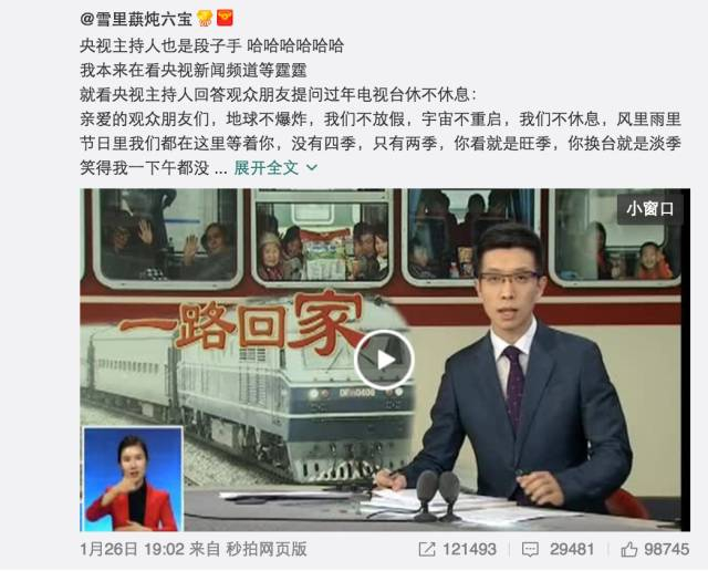 @benbear233:这个主持人每次都说段子。前两天我看的时候,他说完段子没忍住嘴角上扬了。然后就切镜头了,哈哈哈哈哈哈。
