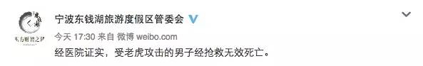 17:30 经医院证实,受老虎攻击的男子经抢救无效死亡。