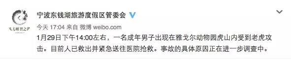 1月29日下午,动物园发生老虎伤人事件,致一人死亡。