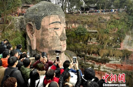中新网乐山2月1日电 (记者 刘忠俊)2月1日,农历正月初五,四川乐山大佛景区再次迎来游客高峰,4万余民众排队一睹大佛真容,由于该景区首次在黄金周推出分时排队措施,游客下栈道观大佛时间大幅缩短。