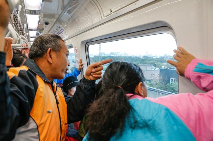 今日一大早,数百位民众便聚集到捷运站外,分别比Ya、比赞,现场充满欢乐的气氛。随后,160多位地方民代与乡亲共同搭乘首班列车,一行人兴奋拍下珍贵画面,欣喜之情溢于言表。另外,岛内“立法院”团体也将在下午,从A1台北车站搭乘捷运到A13机场二航站。