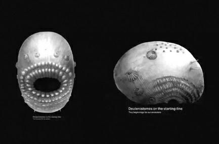 原口动物和后口动物主要区分界定的依据就是口与肛门的颠倒。这次发现的小东西,重点就是在它身上发现了被认为是鳃裂构造雏形的成对排水鳃孔,由此认定它就是后口动物。
