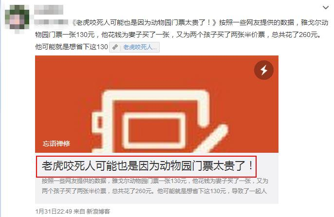 大年初二,宁波雅戈尔动物园的老虎咬死了人,当事人只是为了省130块钱的门票钱。今天,彩訪本(微信号:Btimedc)不聊老虎,不聊逝者,只聊聊这130块钱的门票到底贵不贵。