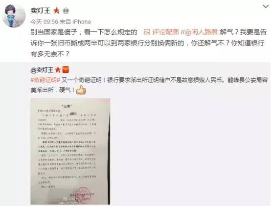每经小编(微信号:nbdnews)查阅资料发现,在2004年2月1日开始施行《中国人民银行残缺污损人民币兑换办法》中,规定凡办理人民币存取款业务的金融机构应无偿为公众兑换残缺、污损人民币,不得拒绝兑换。与鹤峰容美派出所在“证明”中的说法一致。