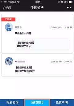 三、点击“我要提问”,查看自己提交的问题及律师回复: