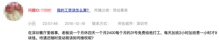 在深圳一家餐厅里做事,老板说一个月休四天,一个月2400,每个月的31号还要免费给他打工,每天加班2小时,加班费一小时才9块钱。待遇还随时变动我该如何维权呢?