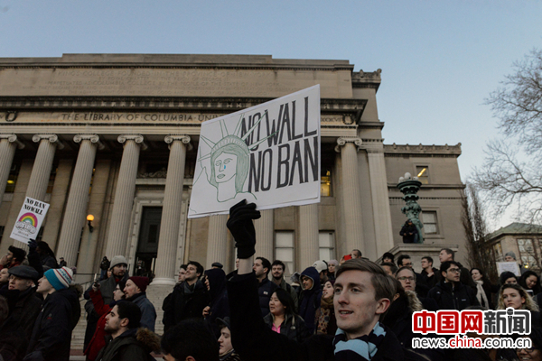 当地时间2017年1月30日,美国纽约,民众集会抗议特朗普限制移民政策。(Stephanie Keith/视觉中国)