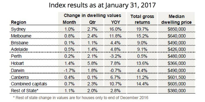 ▲澳大利亚8大城市2017年1月房价变化情况(数据来源:CoreLogic RP Data)