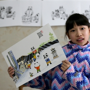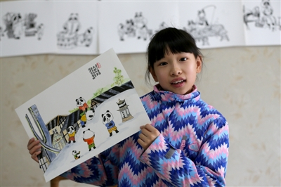 成都10岁小姑娘 12幅作品画家乡 主角全是大熊猫