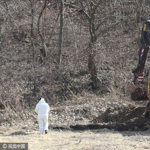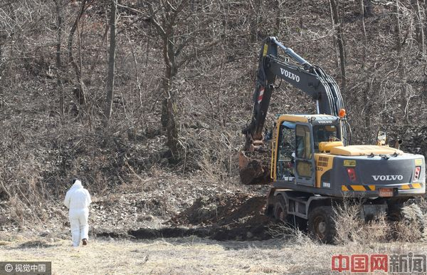 当地时间2017年2月7日,韩国全罗北道井邑市,当地一家养牛场确认出现口蹄疫病例,防疫局对牛场牛群进行宰杀掩埋。