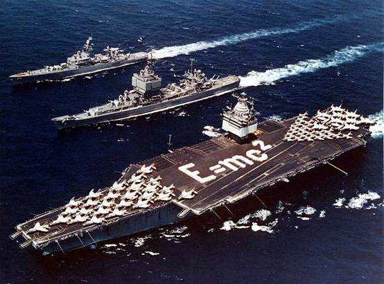 “企业” 号航空母舰,绰号“大E”为“企业”级航空母舰的首舰,在“尼米兹”级服役之前曾是世界最大的军舰。它是美军第八艘以“企业”为名的军舰,舰名源自美国独立战争期间美军俘获并更名的一艘英国单桅纵帆船。与常规动力航母相比,“企业”号的优越性不言而喻。平常军舰需要加油,核动力不需要如此费时费力,只要一次性为核动力航母装好核燃料,可以保证这艘航母航行10年。