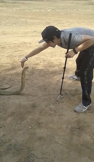 【环球网综合报道】眼镜王蛇,性情凶猛,反应极其敏捷,头颈转动灵活,排毒量大,是世界上最危险的大型蛇类之一。据英国《每日邮报》2月9日报道,近日,一段泰国男子成功捕捉眼镜王蛇全过程视频被上传到社交网站后,引发热议,人们不禁佩服该男子的过人胆识。
