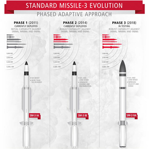 目前,美国还在为“标准-3”系列导弹发展海陆通用型拦截弹,并且在欧洲分三个阶段部署。第一阶段(截止2011年):利用现有能力的“标准”BlockIA第一阶段在2011年完成部署,这一阶段主要是利用现有的海基“宙斯盾”系统和“标准-3”拦截弹,而探测雷达系统主要是利用美国现有的导弹防御系统中欧洲部分。第二阶段(截止2015年):海陆通用的“标准-3”BlockIB这一阶段将在2015年完成,是新反导计划区别与现海基系统和原东欧反导系统的最具特点的部分。主要是部署经过改良、在陆上海上皆可发射的“标准-3”BlockIB导弹,扩大防御范围,并装上更先进的感应器。美国官员表示,若得到捷克和波兰同意,美国可能会在这两国部署陆地发射的“标准-3”IB。第三阶段(2018年):扩大射程的“标准-3”Block IIA该阶段在2018年完成部署,主要使用改装性能更佳、可拦截中程导弹的“标准-3”Block IIA拦截导弹。(窦豆)