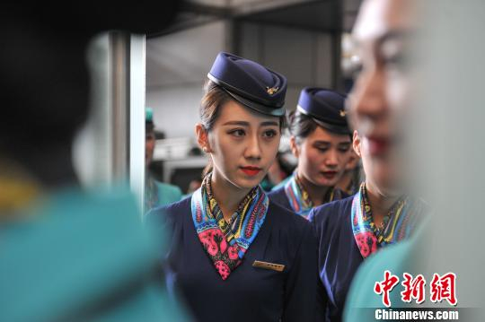 图为昆明航空空乘身着新制服准备上台展示。 任东 摄
