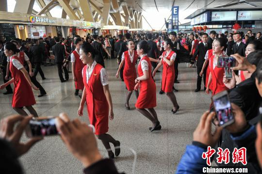 图为昆明航空空乘表演“快闪”。 任东 摄