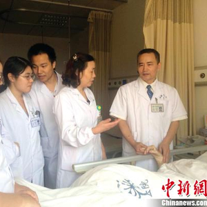 “瘘王”李军与医院专家会诊病人。 中南大学湘雅二医院 供图