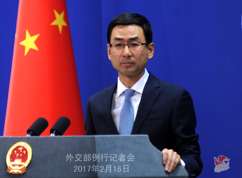 原标题:2017年2月16日外交部发言人耿爽主持例行记者会