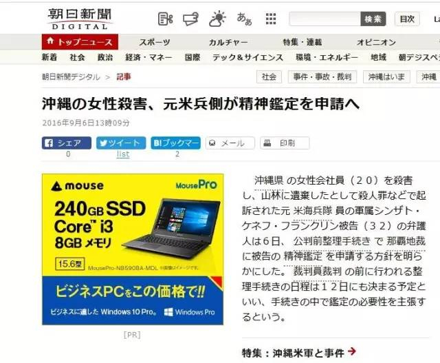 《朝日新闻》:杀害冲绳女性的前美军士兵申请做精神坚定