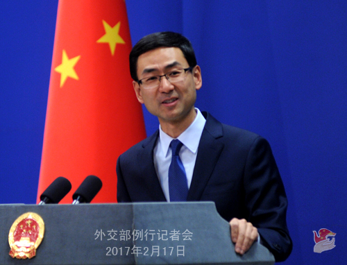 中国网新闻2月17日讯 外交部发言人耿爽今日在例行记者会上就特朗普在中国建筑行业成功注册"特朗普"商标、美方将派海军陆战队员驻守“美国在台协会”、巴基斯坦信德省恐怖袭击事件、印度将在印中战略对话提申请加入NSG等问题等问题回答记者提问。