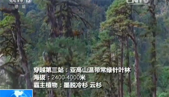穿越第三站:亚高山温带常绿针叶林,海拔2400——4000米,霸主植物:墨脱冷杉、云杉。
