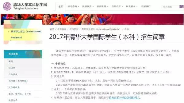 清华大学官网的国际学生招生简章如下: