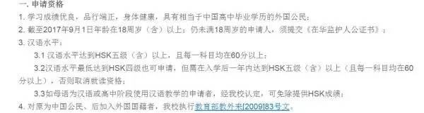 获取申请资格的门槛并不高,只要相应达到国家语委的HSK汉语水平测试即可,依照HSK的考试要求,仅需要掌握1800个汉字。有人认为,这一标准完全无法和国外大学所要求的雅思、托福分数相比。