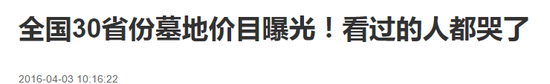 财经网此前就有统计报道,在一份全国30座主要城市的墓地价格排名中,上海排在第一位,高端墓地每块近30万元,全市均价每平米超过6万元;在北京,一些所谓“风水好”的墓地,价格多在每块15万元。而排名全国第七的武汉,其城市墓地均价每平米约4万元,远超当地房价。